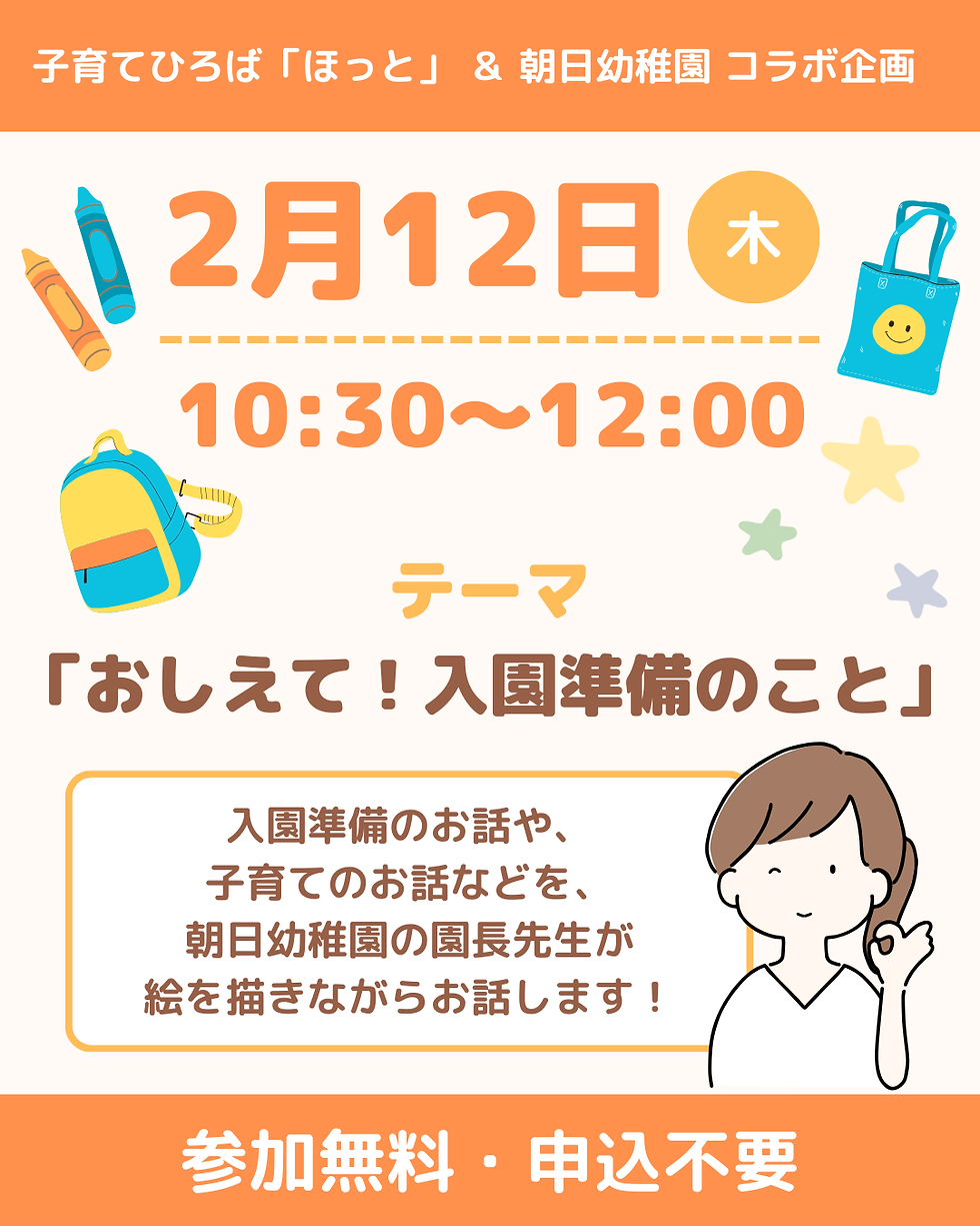 【おしらせ】2/12(木)子育てひろば「ほっと」さんとのコラボ企画!